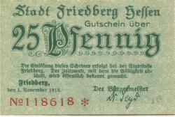 Friedberg - Stadt - 1.11.1919 - 25 Pfennig