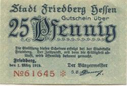 Friedberg - Stadt - 1.3.1919 - 25 Pfennig
