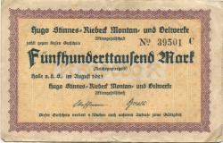Halle - Stinnes-Riebeck, Hugo, Montan- und Oelwerke AG - August 1923 - 500000 Mark