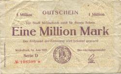 München-Gladbach - Stadt - 14.8.1923 - 1 Million Mark