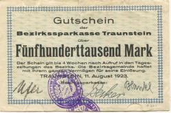Traunstein - Bezirks-Sparkassa - 11.8.1923 - 500000 Mark