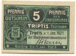 Triptis - Stadt - 1.1.1921 - 1.1.1923 - 5 Pfennig
