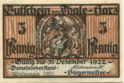 Thale - Stadt - 30.4.1921 - 31.12.1922 - 5 Pfennig