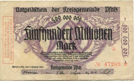 Speyer - Kreisgemeinde Pfalz - 1.10.1923 - 1.4.1924 - 500 Millionen Mark