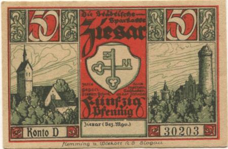 Ziesar - Städtische Sparkasse - -- - 50 Pfennig